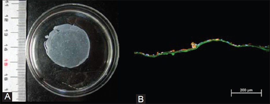 Methods: PPC derived from rabbit tibia periosteum, cultivated on polymerized fibrin-coated dishes and harvested as PPC sheet. A confocal microscopy assay was used to evaluate the morphology of PPC sheets. PPC sheets as a periosteum to wrap around hamstring tendon grafts were pulled into a 3-mm diameter bone tunnel of tibia, and compared with a tendon graft without PPC sheets treatment. Rabbits were sacrificed at 4 and 8 weeks postoperatively for biochemical assay and histological assay to demonstrate the enhancement of PPC sheets in tendon-bone healing.