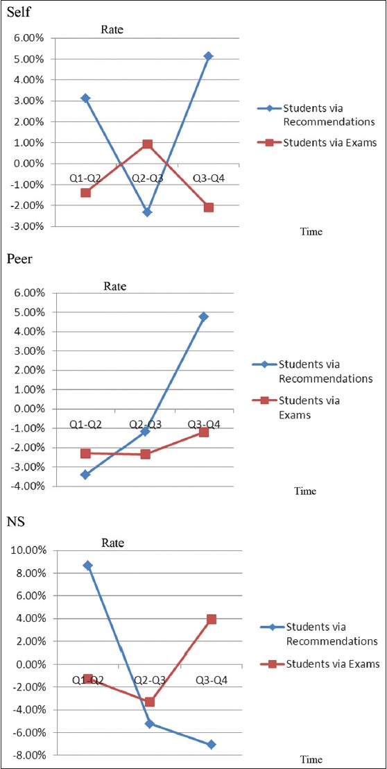Conclusion: Collectively, the performance of the students enrolled through recommendations was slightly better than that of the students enrolled through the NCUEE, although statistical significance was found in certain parts of the grades only.